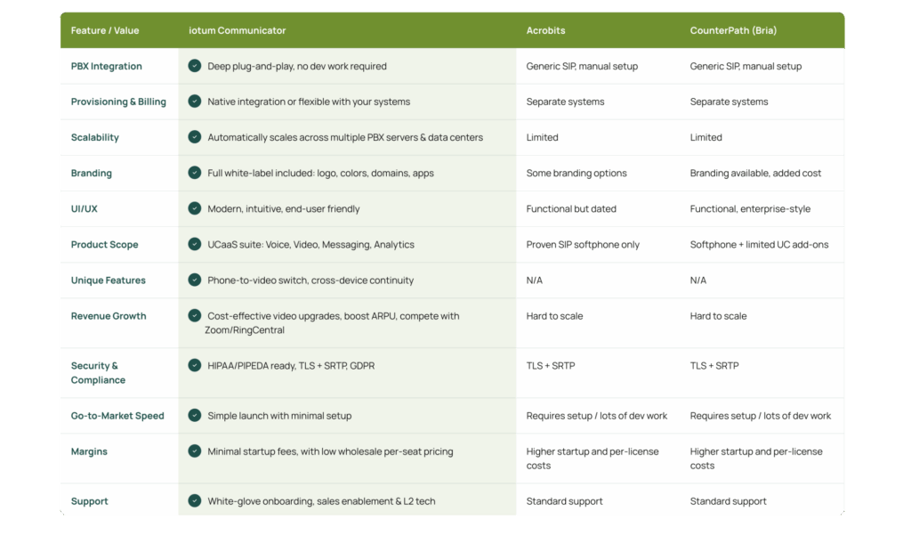 Where other softphones stop at SIP, the iotum Communicator gives you an entire