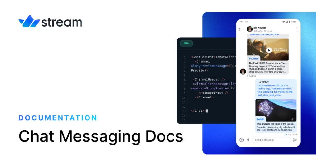 | Stream Chat | – 50+ UI screens- 12 customizable themes- Markdown support | Developer-friendly with detailed docs | Not mentioned | Free: 100 MAUStart: $399/mo (5k+ MAU) | Serves 1B+ end users99.999% uptime | Developer-focused applications |